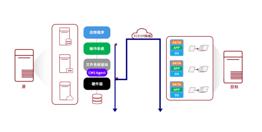 業(yè)務(wù)系統(tǒng)工作負(fù)載 (操作系統(tǒng)、應(yīng)用程序、數(shù)據(jù))一體化遷移至目標(biāo)端。