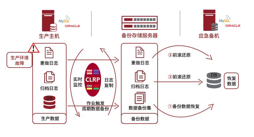 針對 Oracle、Oracle RAC、MySQL 數據庫的保護,采用自主研發的連續日志保護(CLRP)技術,實現對變化數據達到秒級以內的備份保護,真正做到數據庫的實時備份,并可恢復到任意時間點或 SCN。
