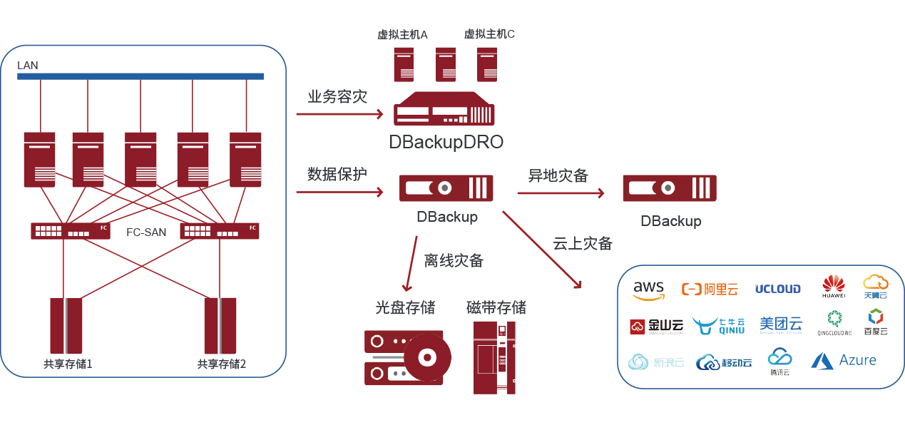 透過DBackup 可對生產數據進行實時備份,支持完全備份、差異備份、增量備份、日志備份等多種備份策略,實現全備份恢復和單文件、單郵件等細粒度的數據歷史副本恢復。