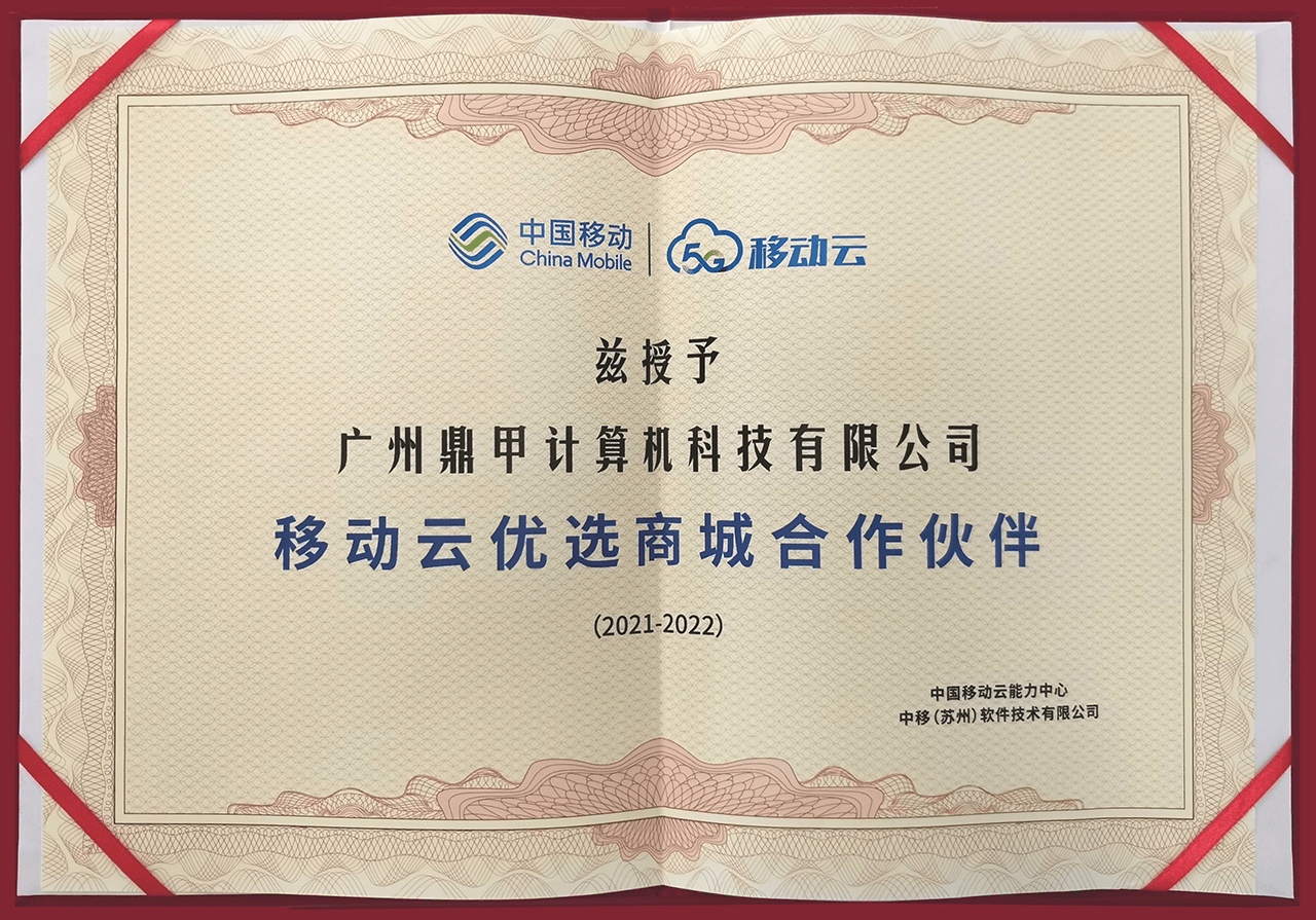 喜訊!鼎甲再次入選2021年移動云優(yōu)選商城合作伙伴