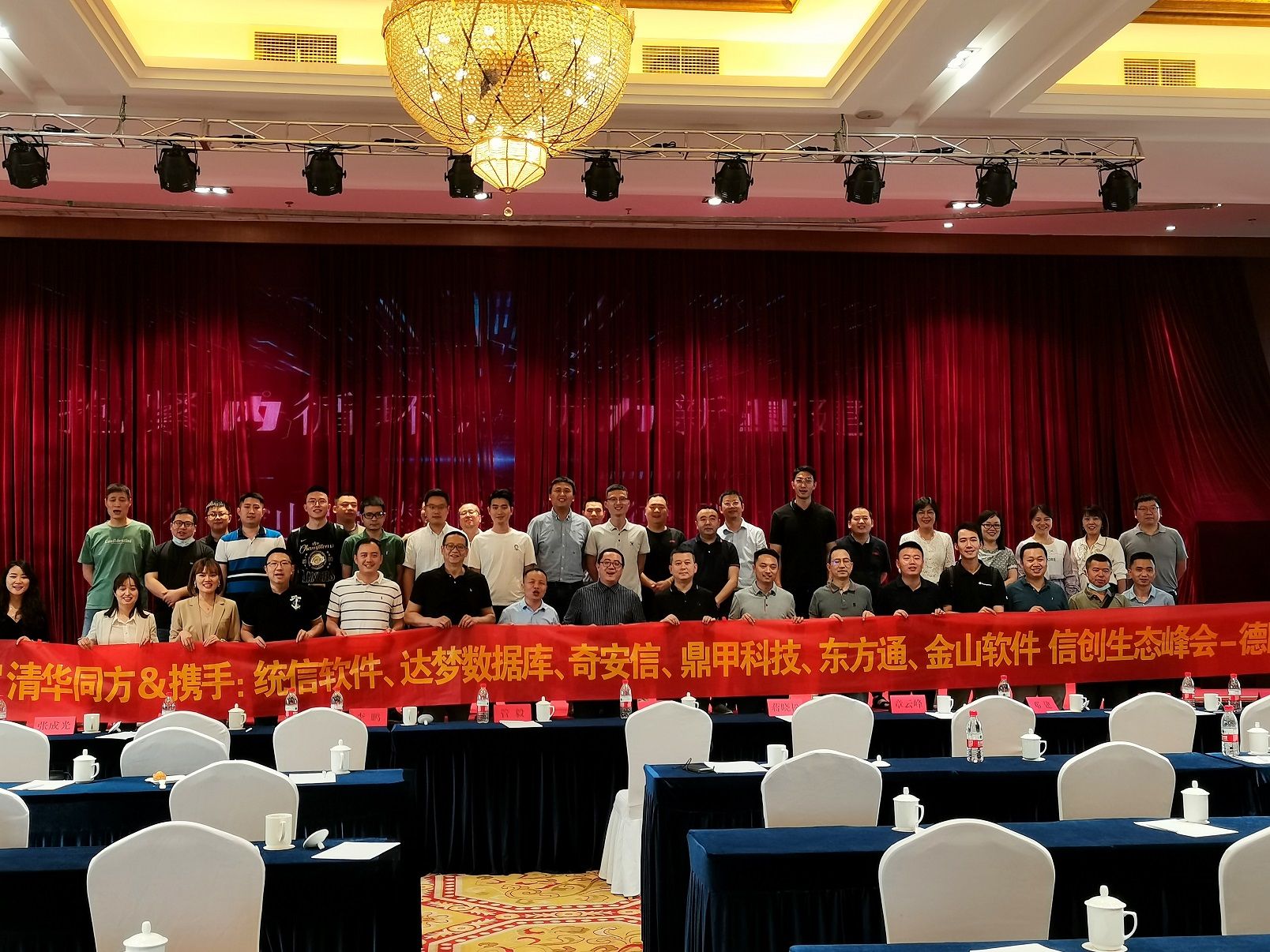 5月11日,清華同方攜手鼎甲、達夢、奇安信、統信、東方通、金山軟件等生態廠商共同舉辦信創生態峰會-德陽站,通過共同分享,進一步增強在四川區域渠道之間的合作交流,完善信創生態鏈,并聯合展示最新信創建設成果及前沿技術。