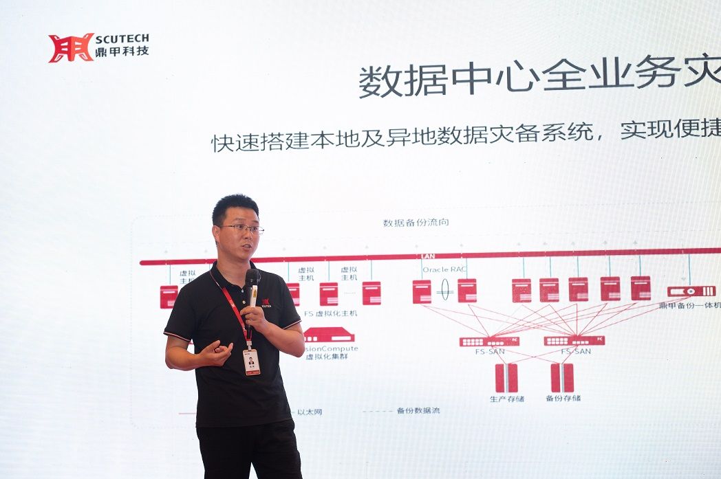 隨后,鼎甲西北區(qū)技術(shù)總監(jiān)徐煒介紹了鼎甲的最新產(chǎn)品解決方案,隆重推出適應(yīng)云邊端場景的應(yīng)用級容災(zāi)產(chǎn)品組合,通過滿足混合云復(fù)雜環(huán)境一鍵容災(zāi)切換和實(shí)現(xiàn)秒級 RPO、分鐘級 RTO 的整機(jī)應(yīng)急接管,助力用戶可靠的業(yè)務(wù)連續(xù)。其次,在產(chǎn)品升級方面,鼎甲的王牌產(chǎn)品DBackup在兼容適配、備份效率、應(yīng)急能力、云化適應(yīng)和運(yùn)維能力上,一如既往地實(shí)現(xiàn)更多突破:首家支持達(dá)夢多集群備份,支持集群架構(gòu)種類為國內(nèi)之最,幫助用戶管理化繁為簡。首個(gè)針對重刪數(shù)據(jù)的分布式集群,備份效率提升達(dá)50%以上,無懼?jǐn)?shù)據(jù)增長。在新功能上,鼎甲新增包括 Oracle 應(yīng)急與生產(chǎn)數(shù)據(jù)一鍵回遷、DBackup 元數(shù)據(jù)云端自保護(hù)等功能,針對 VMware 備份也實(shí)現(xiàn)進(jìn)一步優(yōu)化,為客戶提供更成熟、更易管、更云化的極致體驗(yàn)。