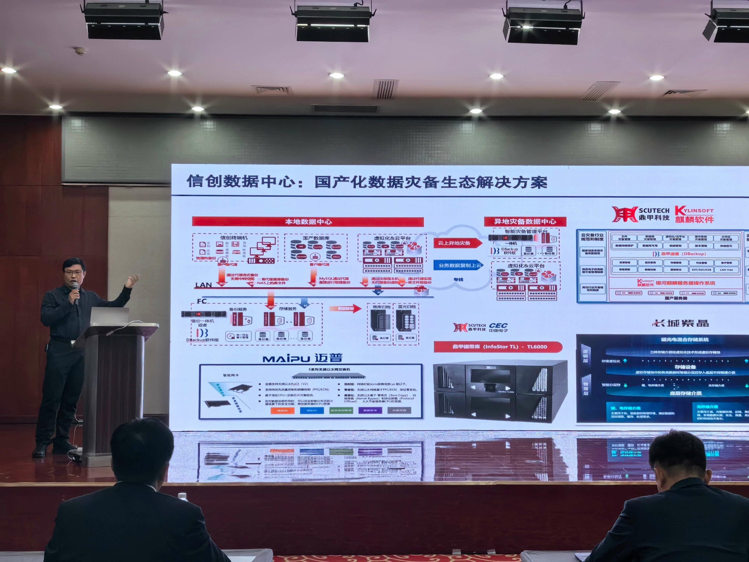 多家優(yōu)秀企業(yè)代表分享了在行業(yè)應(yīng)用協(xié)同創(chuàng)新中的最新成果。鼎甲北區(qū)技術(shù)總監(jiān)姜思亮帶來了《信創(chuàng)成功方案和實施案例》主題演講。中國電子致力于聯(lián)合生態(tài)優(yōu)勢力量,聚力打造產(chǎn)品能力融合解決方案。其中,鼎甲作為中國電子旗下唯一的數(shù)據(jù)保護企業(yè),PKS 體系的重要成員,其國產(chǎn)數(shù)據(jù)保護平臺融合了備份、容災(zāi)、CDM、重復(fù)數(shù)據(jù)刪除、磁帶歸檔等功能模塊,兼容適配多種操作系統(tǒng)、海量文件、數(shù)據(jù)庫、虛擬化平臺、云計算平臺、大數(shù)據(jù)應(yīng)用、云原生應(yīng)用等各類資源,為用戶提供成熟穩(wěn)定、性能優(yōu)越、安全合規(guī)的整體解決方案。