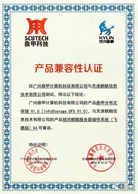 鼎甲科技與天津麒麟生態(tài)認證公告